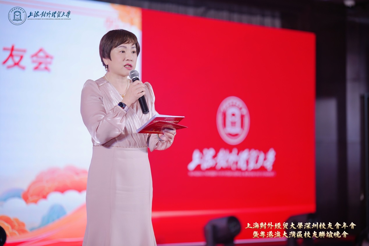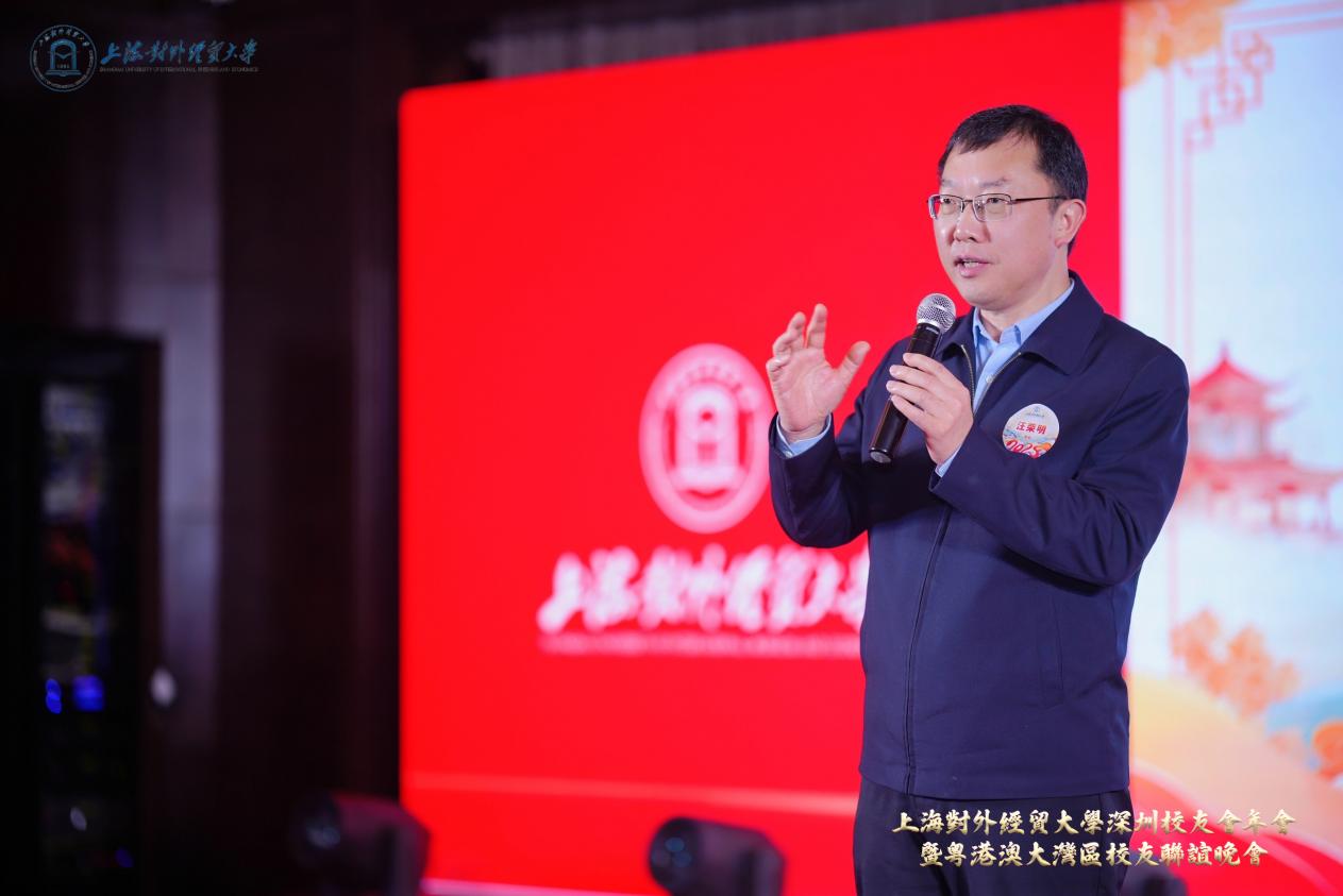 1月11日,上海对外经贸大学“湾区联动、协同创新”校友论坛暨深圳校友会2025年年会在深圳大中华喜来登宴会厅隆重举行。校长汪荣明出席活动并致辞。校友工作联络处处长晏琼,合作交流处处长、学校办公室副主任赵静,招生就业处处长魏舒,开放教育学院院长、高级研修学院院长邱贵溪,学校办公室副主任、合作交流处副处长巫雪松以及校友工作联络处相关工作人员出席活动。深圳校友会会长申斌、港澳校友会会长陈添、广东校友会会长吴桂平、四川校友会会长王冠华和教育发展基金会理事长吴益民以及在大湾区的校友代表等百余人参加活动,共同回顾往昔岁月,展望美好未来。活动由法学院校友李可、林文婷主持。