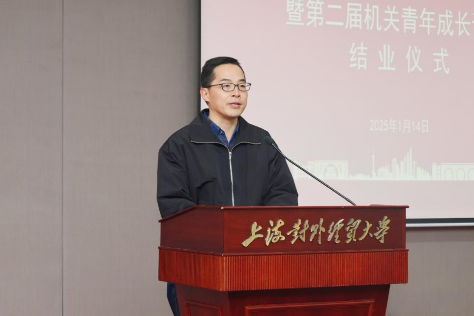 1月14日下午,机关党委举行2024年秋季学期机关人员专题教育培训班结业仪式暨第二届机关青年成长论坛。校党委书记祁明出席并讲话,机关全体人员参加结业式。主会场设在松江校区图文信息楼526会议室,长宁校区综合楼108会议室同步直播。结业式由机关党委书记范登峰主持。