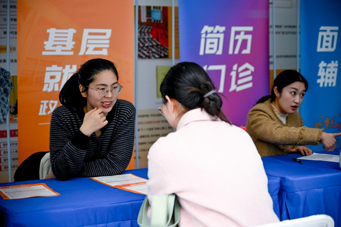为帮助学生提升求职能力、了解相关就业政策,招聘会现场特别设置了简历门诊、面试指导、基层就业政策咨询专区。指导教师热情悉心地答疑解惑,为学生们扫除求职道路上的困惑。