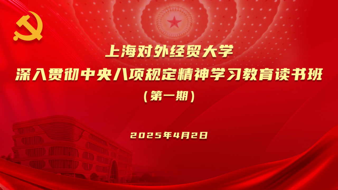 4月2日下午,上海对外经贸大学深入贯彻中央八项规定精神学习教育读书班开班。本期读书班以校领导班子成员“领学+述学”的方式开展,重点围绕习近平总书记关于加强党的作风建设的重要论述进行深入学习研讨。学校领导班子成员参加会议,学习教育专班成员单位主要负责同志列席会议。读书班由校党委书记祁明主持。