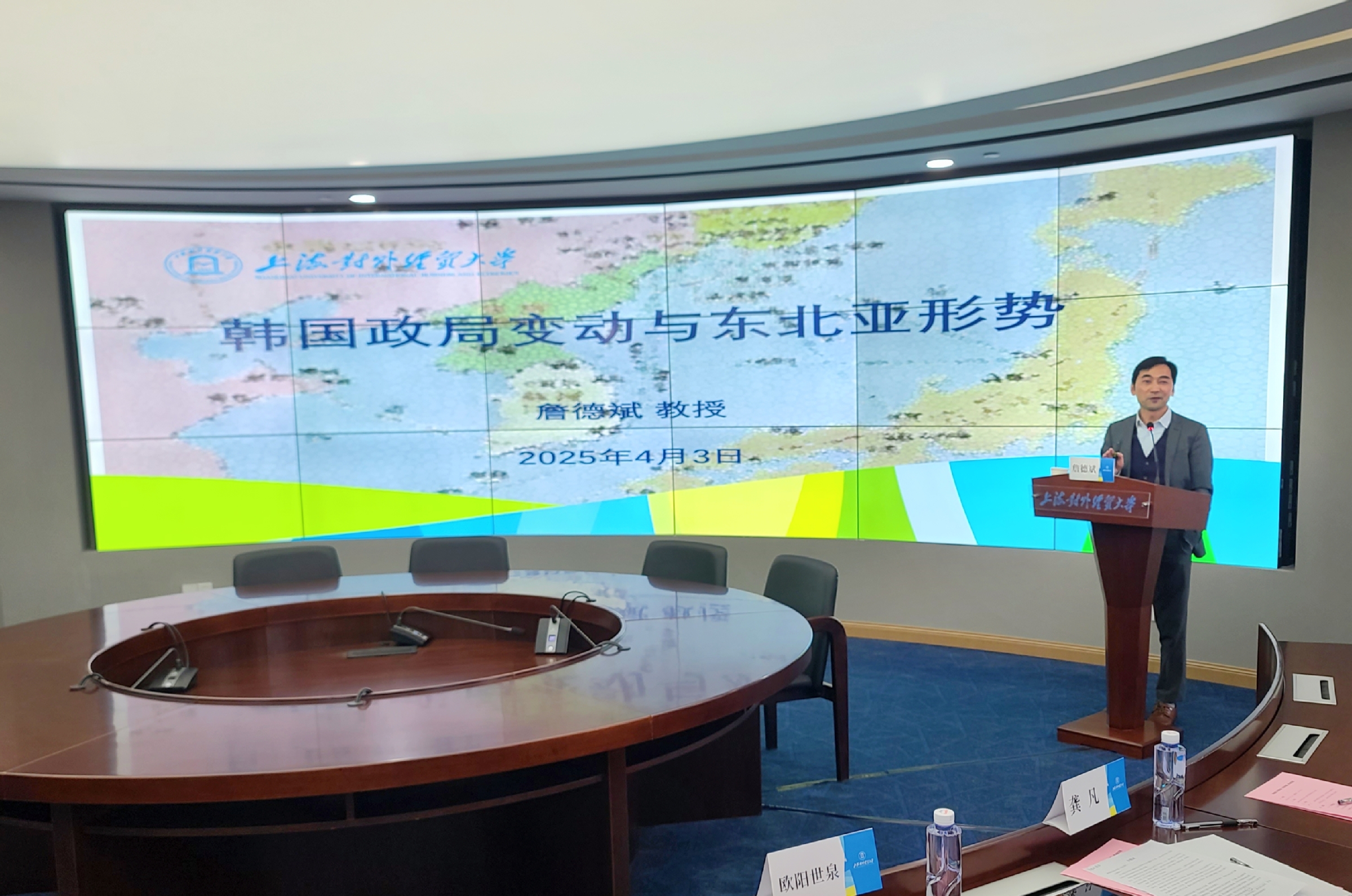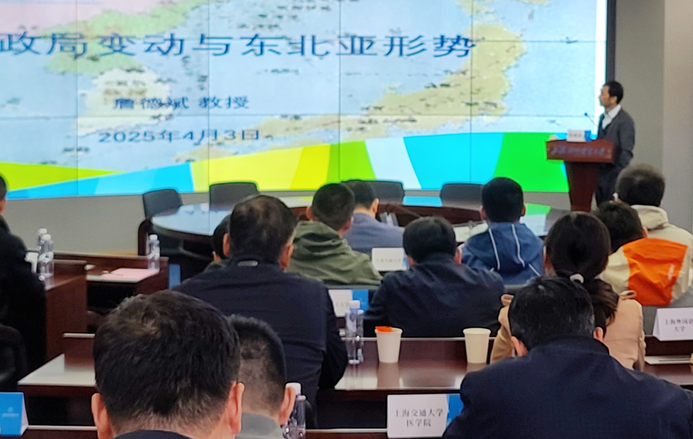 朝鲜半岛问题研究专家、上海对外经贸大学国际组织学院詹德斌教授以“韩国政局变动与东北亚形势”为题,解析国际局势演变对高校意识形态安全的影响路径。