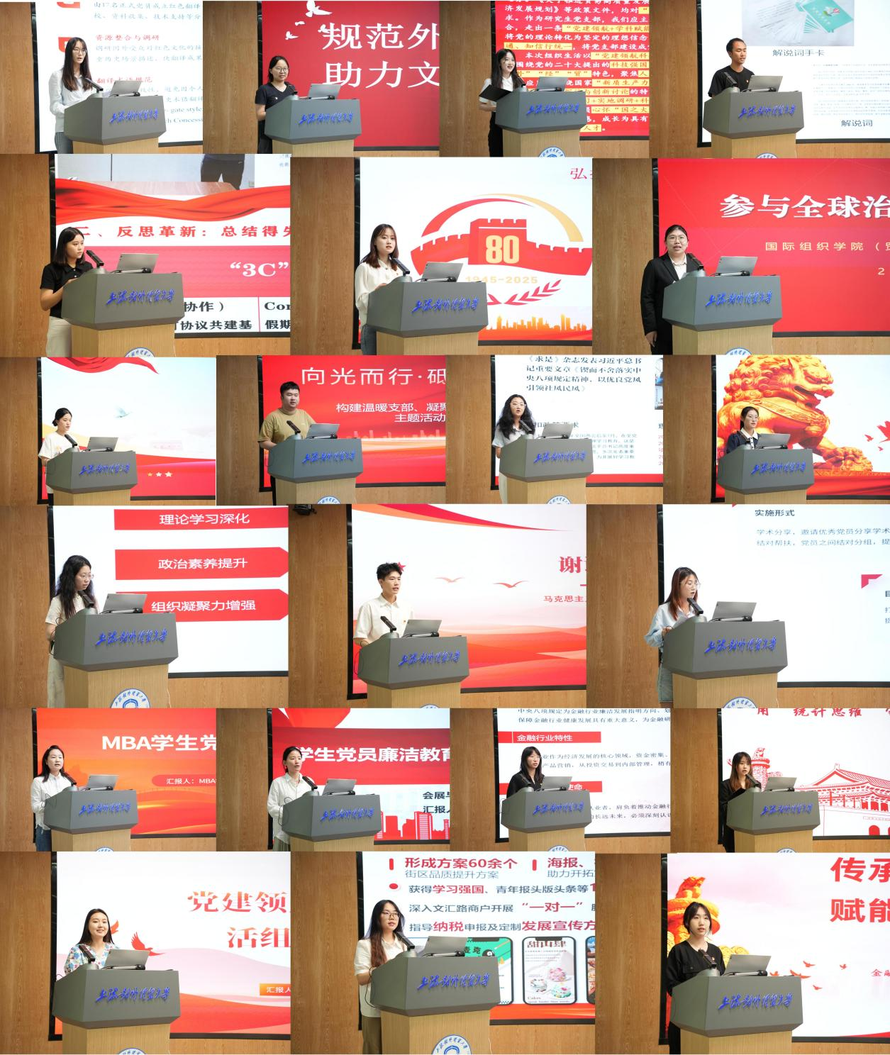 以信仰之光照亮青春征程,用学科智慧赋能党建创新。6月13日,学校2025年研究生党支部组织生活案例大赛在松江校区图文信息大楼213会议室举行,来自全校的21个研究生党支部参加现场答辩?;Ψ洞笱У澄扛辈砍ぁ⒚舷艹惺樵旱澄笔榧橇汉炅?,上海外国语大学国际工商管理学院党委副书记汪丽,立信会计金融学院党委学工部副部长张银爽担任大赛评委,各支部党员代表现场观摩。