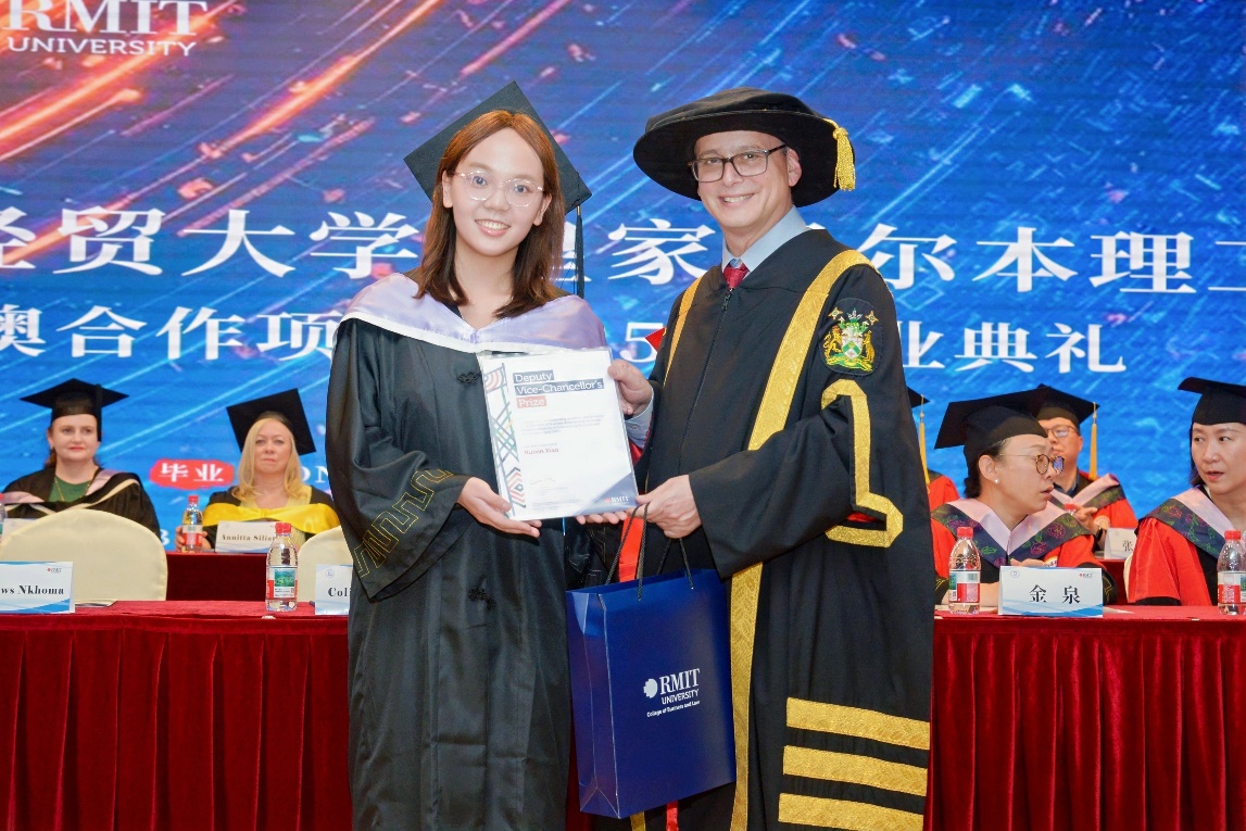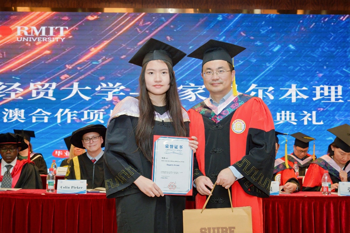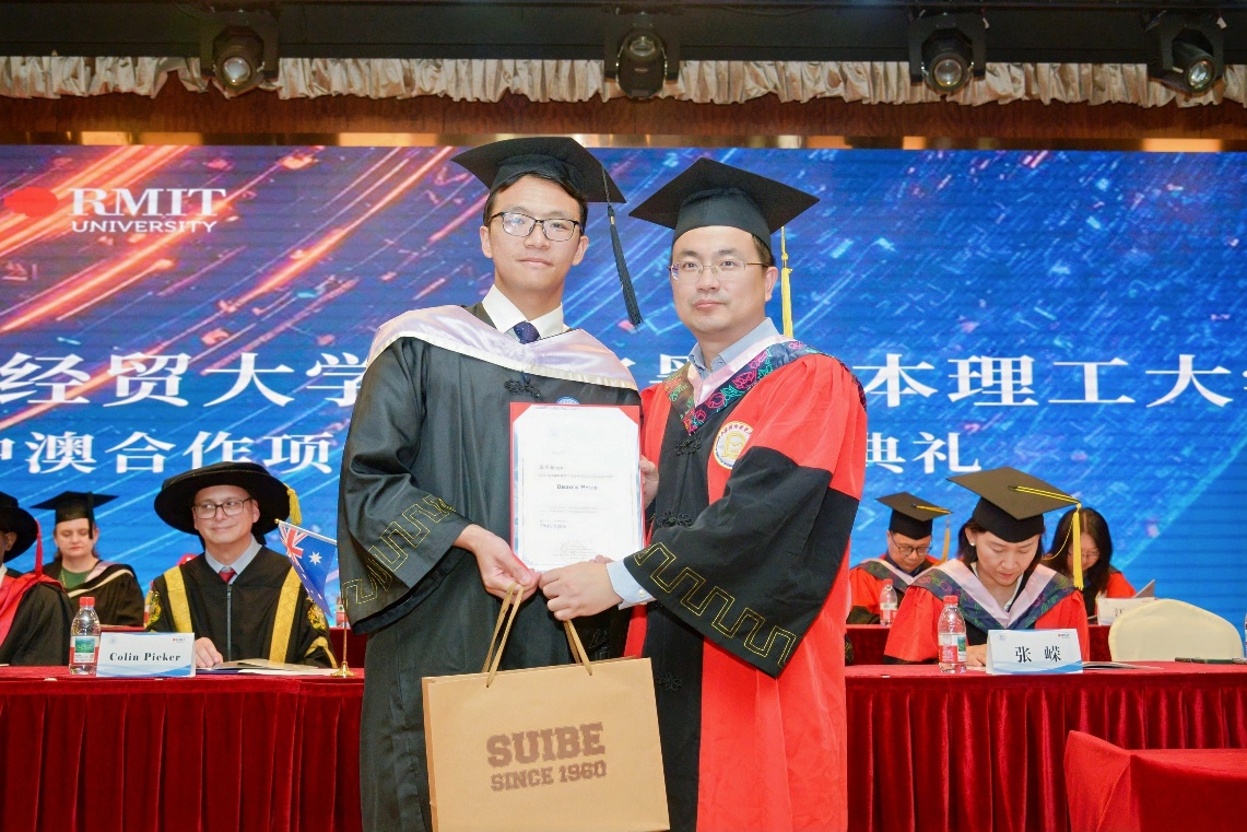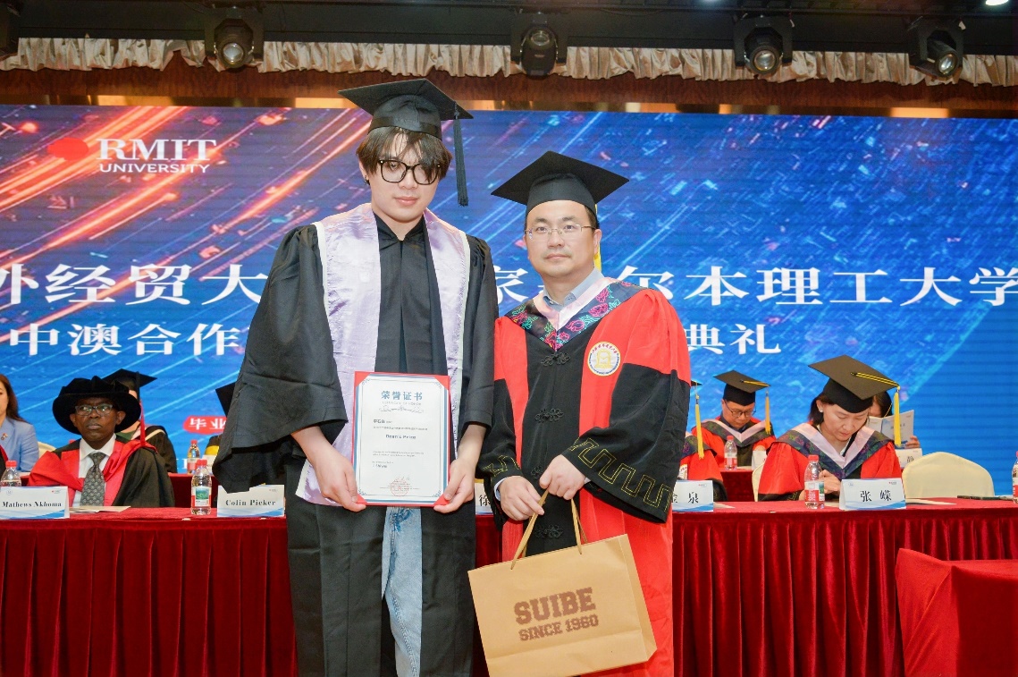 2025届中澳合作项目毕业生包括国际商务和物流管理本科学生以及商学副学士学生,Colin Picker教授为毕业生分别颁发RMIT大学商科国际商务本科证书、商科物流管理本科证书和商学副学士证书,并与每位毕业生一一合影留念。
