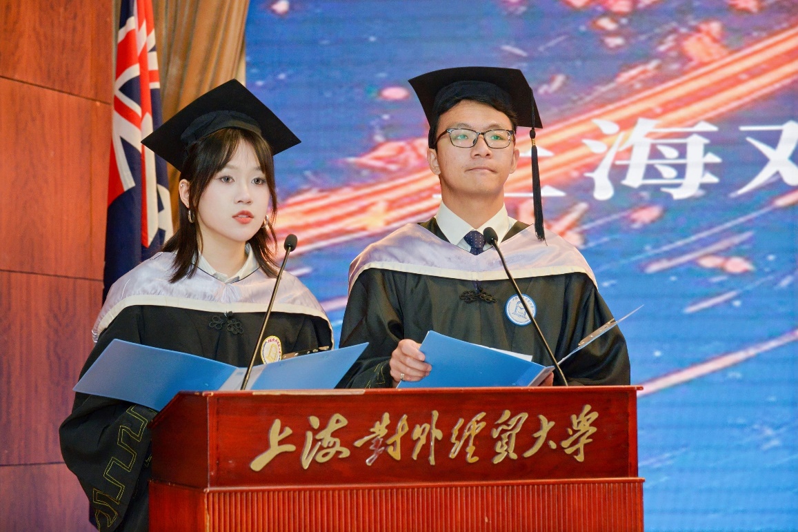 在隆重的颁奖仪式之后,国际商务专业朱令新和物流管理专业王煜洁同学代表2025届中澳合作项目的全体毕业生发言。