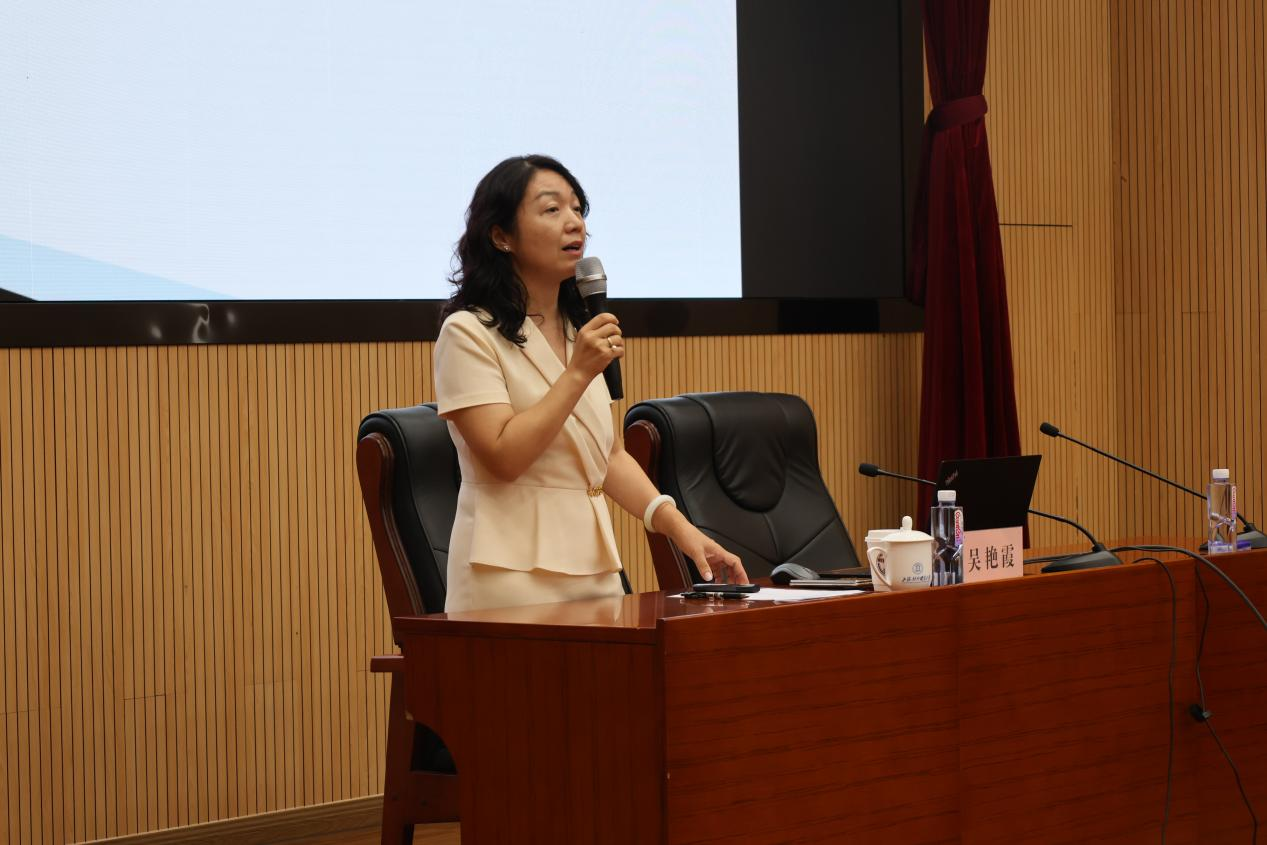 上海师范大学心理咨询与发展中心主任吴艳霞副教授以《研途启航,护心成长——研究生心理适应指南》为题,介绍了研究生阶段常见的心理困扰和面对的挑战,并向新生传授了“做好规划、加强沟通、善待自己、开放倾诉”四大心理调适的法宝,鼓励新生注重关爱自我,以健康的心态迎接学术与人生的双重成长。
