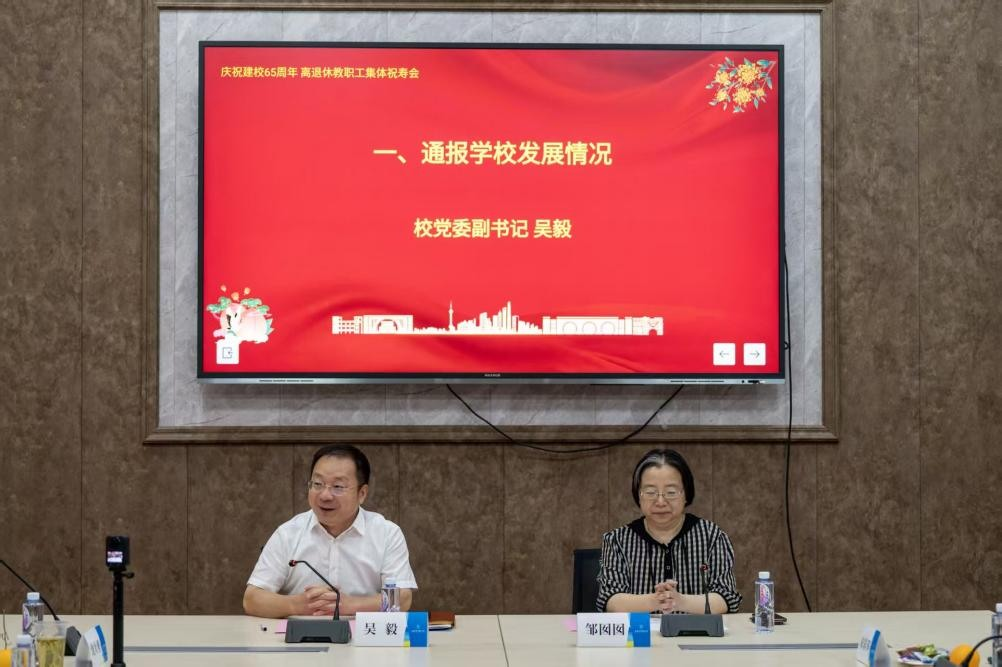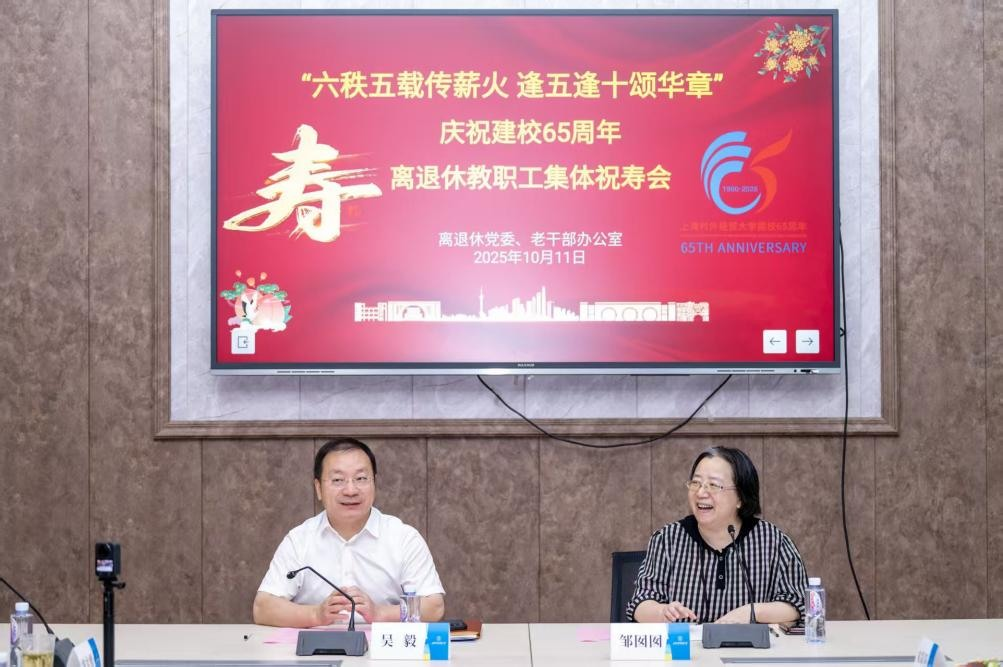 岁月如歌,春华秋实。10月11日,在学校喜迎建校65周年华诞之际,为向学校离退休教职工表达崇高敬意与美好祝福,老干部办公室在长宁校区举办离退休教职工集体祝寿会。53位今年虚龄“逢五逢十”的退休教职工欢聚一堂,共忆昔日同事情谊,同庆学校生辰,共享温馨时光。校党委副书记吴毅代表学校出席了祝寿会。祝寿会由离退休党委书记、老干部办公室主任邹囡囡主持。