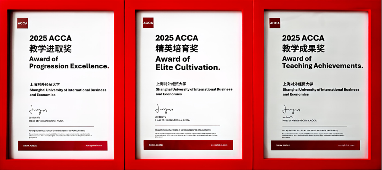 大会揭晓了2025年度ACCA四大奖项,上海对外经贸大学会计学院一举揽获“精英培育奖”“教学成果奖”“教学进取奖”三项大奖。其中,“精英培育奖”作为最具分量的奖项之一,仅授予有学生在2024—2025全球统考中获得ACCA单科大陆第一的11所高校。三项重要荣誉的背后,是会计学院深耕国际会计教育十余年的生动体现。自2010年与英国特许公认会计师公会(ACCA)深度合作以来,上海对外经贸大学会计学院率先开设本科ACCA方向班,并于2015、2017、2018、2019和2023年获评“ACCA全国优秀高校”,2018年摘得“ACCA中国卓越教育机构成就奖”。历届学子1人次获ACCA全球第一,11人次获ACCA单科全国第一,4名教师获全国“ACCA优秀专业指导教师”称号。