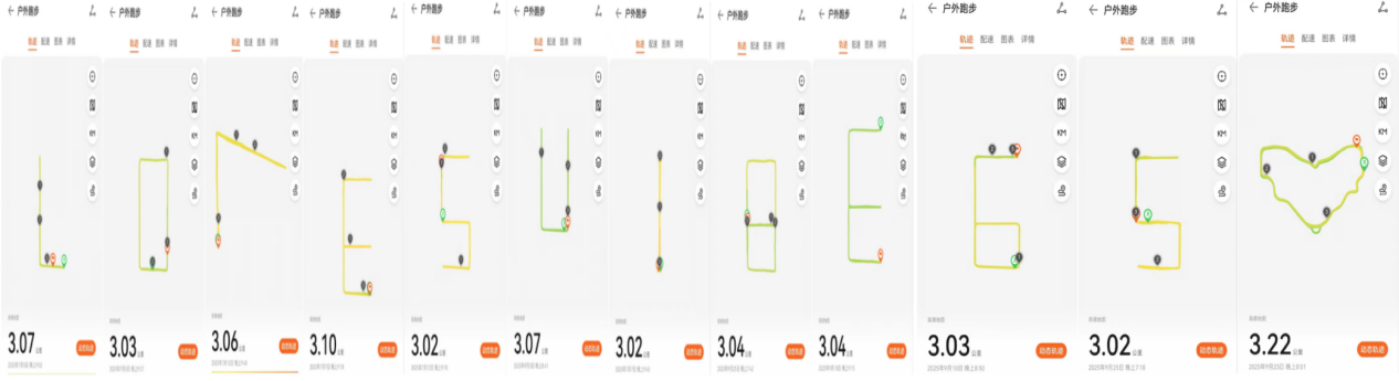 自2025年7月1日活动启动以来,协会成员积极组织,号召老师们参与其中?;疃诵哪勘昵逦魅罚翰斡胝咝柙谌鲈履冢ü懿交蚩熳叩姆绞?,完成“LOVESUIBE65”系列图案的绘制——整套图案包含爱心在内共12个图形,每个图形对应的运动距离需不少于3公里。为确?;疃酵该鳎斡胝呙看瓮瓿赡勘旰?,需及时在微信群发布包含日期、里程、时间、图案的跑步记录截图,累计完成图案目标的参与者视为完赛。