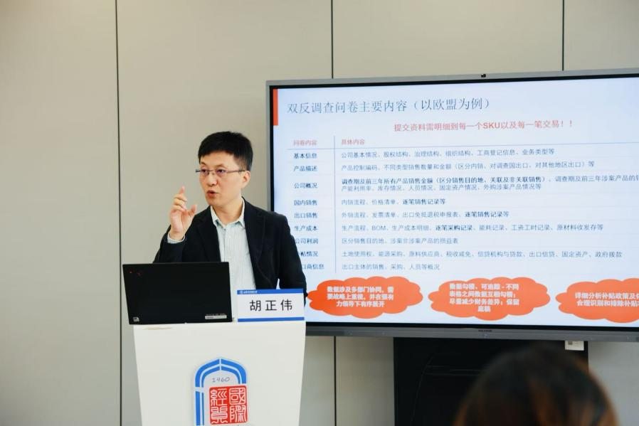 在2024年全球对华贸易救济原审立案数量创下142起新高的背景下,“双反调查”(反倾销、反补贴)与欧盟《外国补贴条例》已成为中国企业国际化进程中面临的重大合规挑战,尤其对以“新三样”为代表的重点产业及上下游企业影响显著。本期训练师为普华永道中国税务及商务咨询部门合伙人胡正伟先生。他以深厚的实战经验与前沿视野,系统解析了反倾销与反补贴调查的核心机制,深入剖析了欧盟《外国补贴条例》的立法背景、执法动态及对中国企业财税合规的深远影响,并通过多个真实案例,生动再现了业务关键点。本期训练不仅帮助税务专硕学生建立起对国际财税合规环境的系统认知,更通过复盘典型案件的应对逻辑,提升了他们在复杂合规环境中的风险识别与策略应对能力。