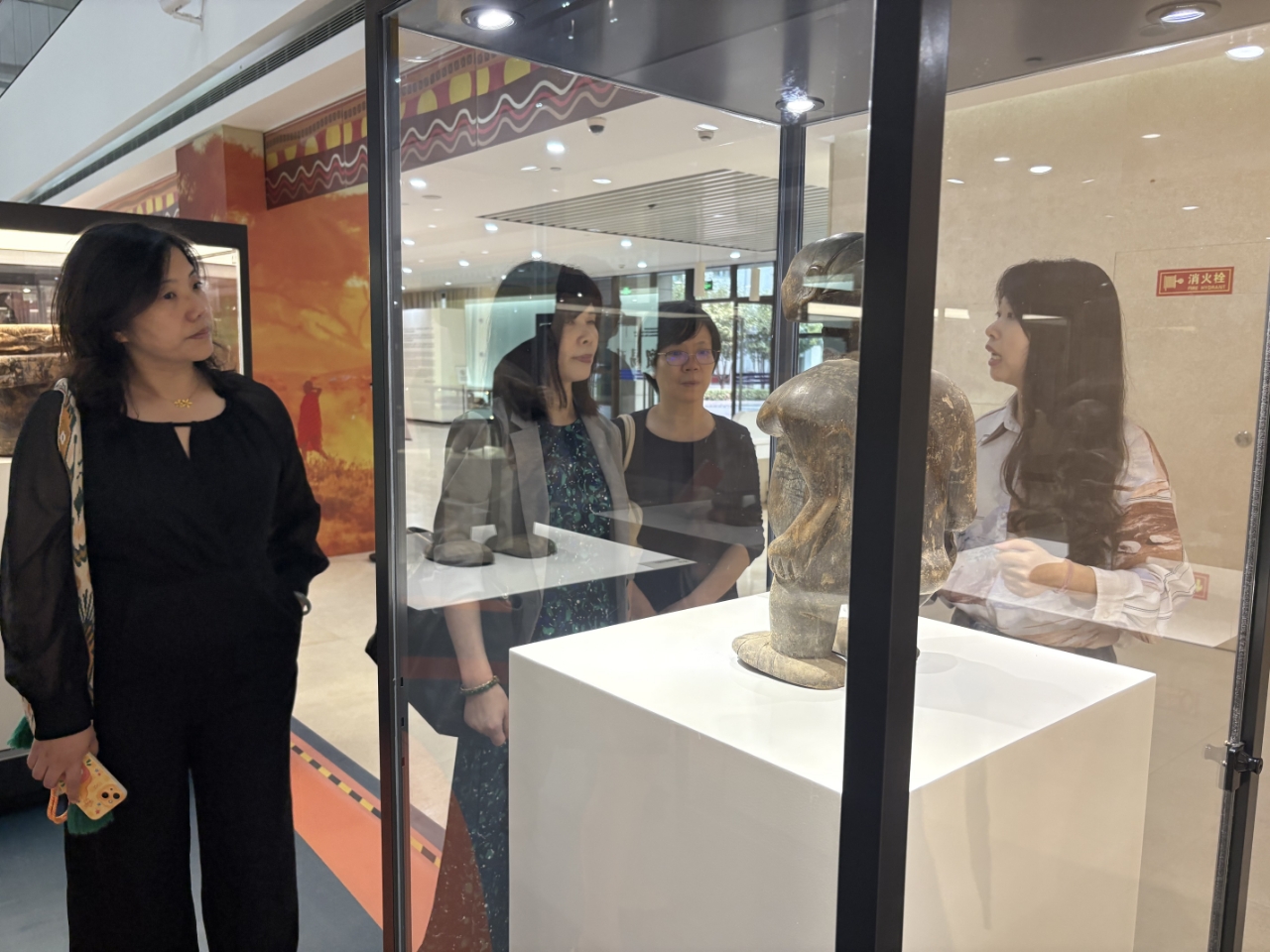 访问期间,国际部同仁还走访了我校国际组织学院,在学院党委书记刘素贞的介绍下实地了解我校在国际组织人才培养与学生海外实习等方面的具体举措与阶段性成果,并一同参观了我校博物馆正在展出的“非洲雕刻艺术展”。