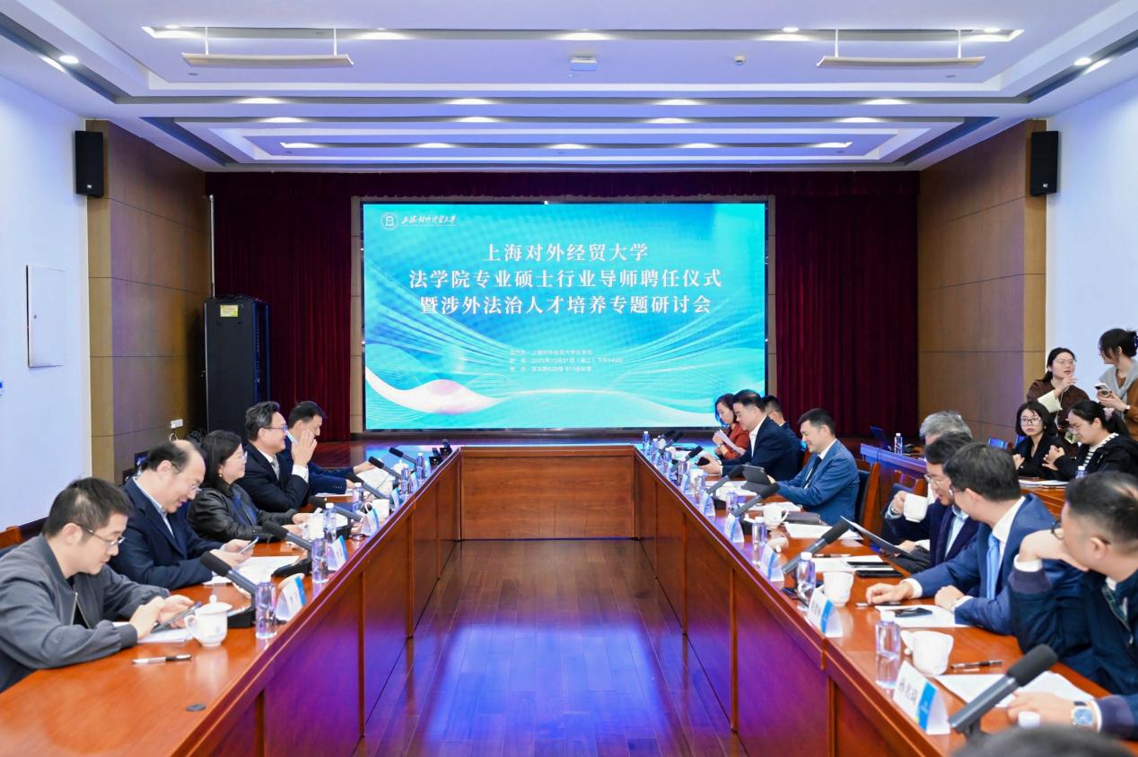 10月21日,上海对外经贸大学法学院在长宁校区综合楼举行法律硕士行业导师聘任仪式暨涉外法治人才培养专题研讨会。来自本市多家知名律师事务所及司法部门的专家代表齐聚一堂,围绕涉外法治人才培养体系建设、校企协同育人机制展开深入研讨。