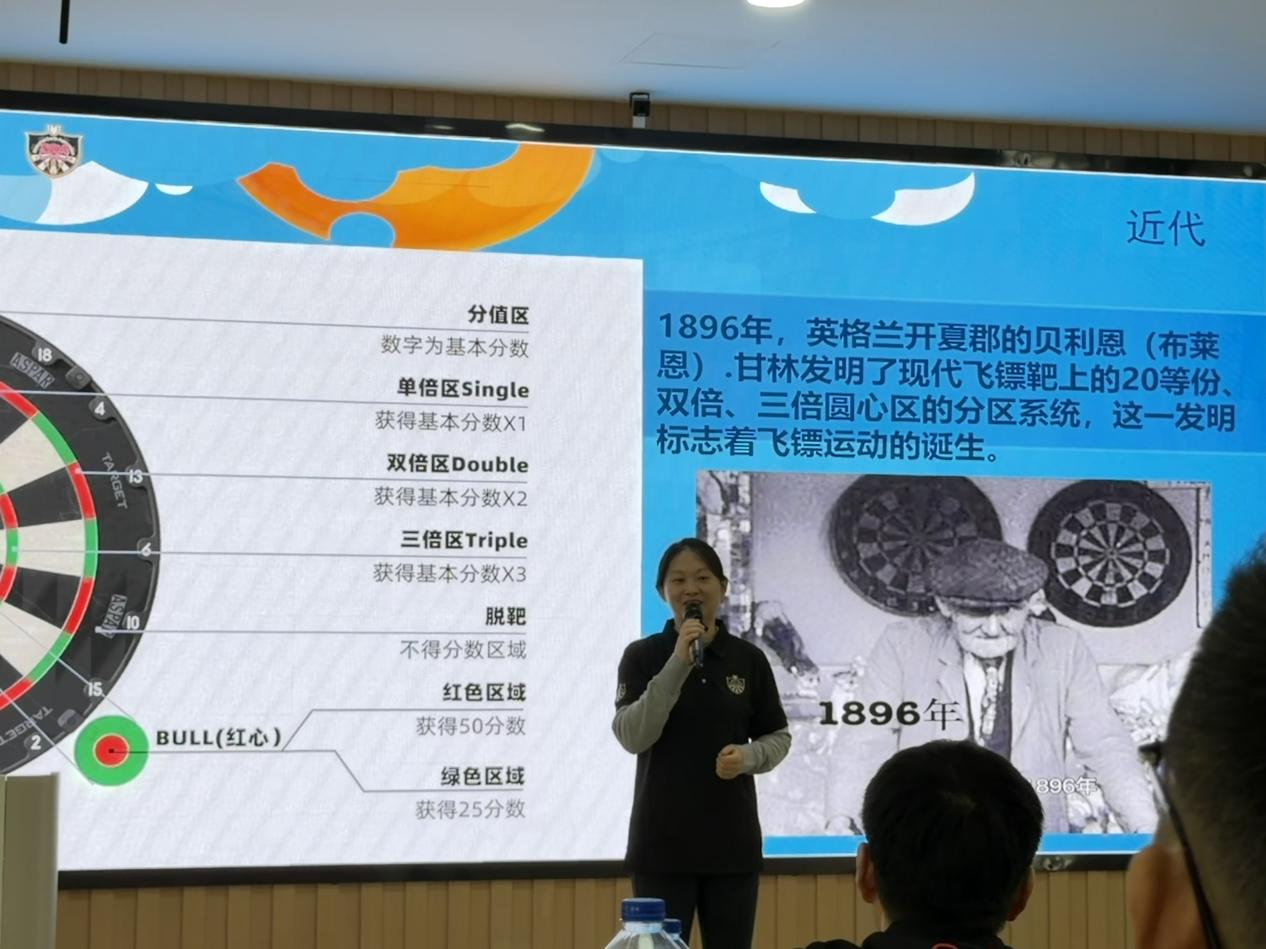 金何琳作了飞镖运动基础理论系统讲解。她首先梳理了飞镖运动的历史起源与发展脉络,随后详细介绍了飞镖运动的分类方式,最后围绕飞镖运动的基础理论知识,进行了深入浅出的解读,为学员构建起对飞镖运动的整体认知框架。