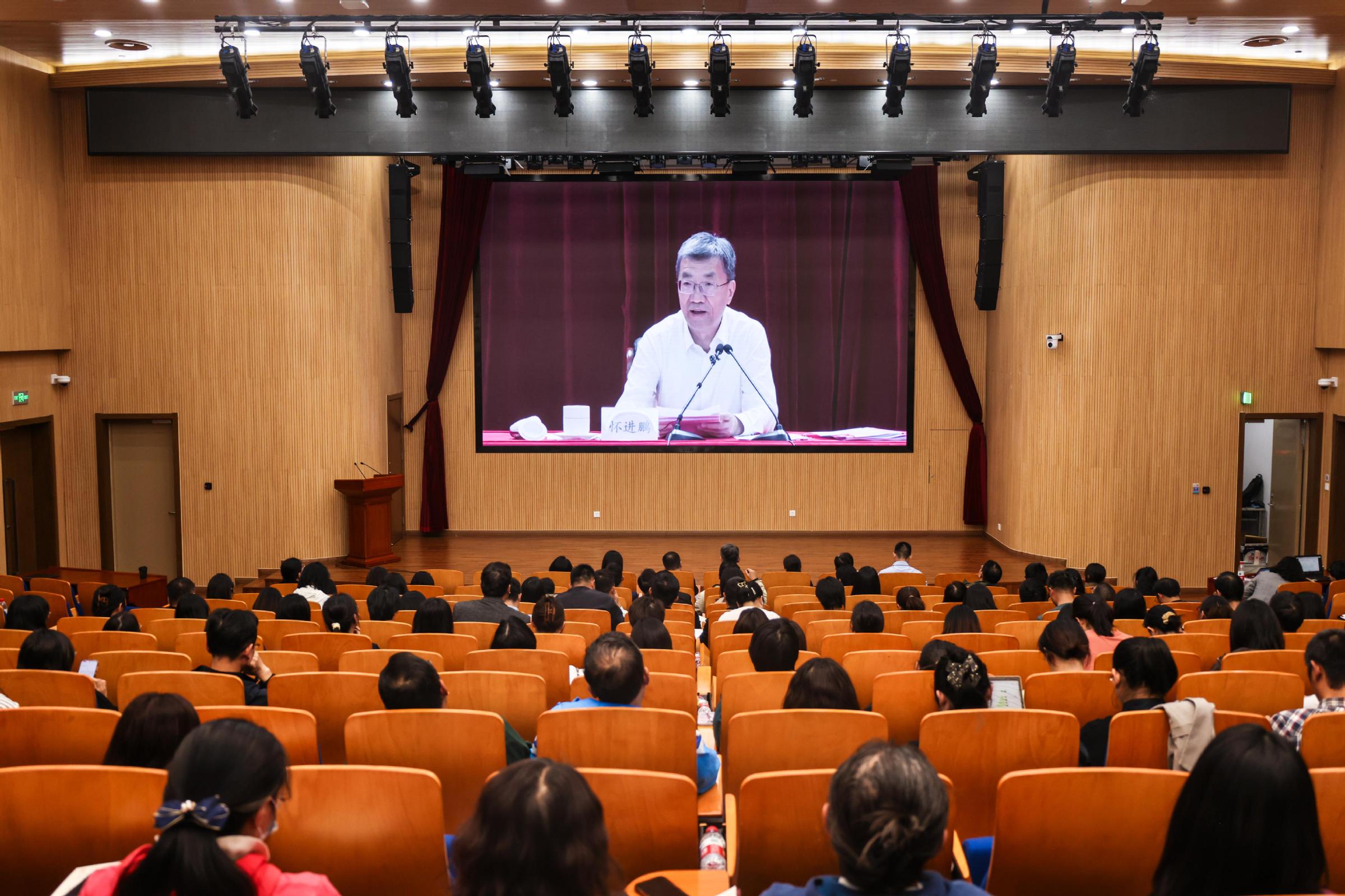 为深入学习贯彻习近平新时代中国特色社会主义思想和党的二十届四中全会精神,贯彻落实习近平总书记关于教育的重要论述和全国教育大会精神,强化党的创新理论武装,凝聚干事创业强大合力,1028日下午,学校举行2025年党员基本培训第三次集中大课。教育部党组书记、部长怀进鹏作“深入学习贯彻习近平总书记关于教育的重要论述 以教育强国支撑引领中国式现代化”专题报告。学校全体师生党员在图书馆思源报告厅主会场和松江、长宁15个分会场听取报告。市教卫工作党委组织干部处有关同志到会指导。